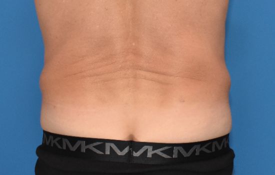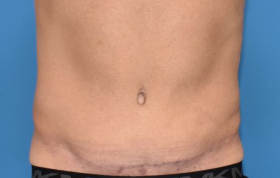 53 yr old male, 6’2 and 200 lbs, has lost weight and is concerned about his abdominal appearance. He underwent an abdominoplasty and liposuction of his flanks. Results shown are 6 months after surgery.