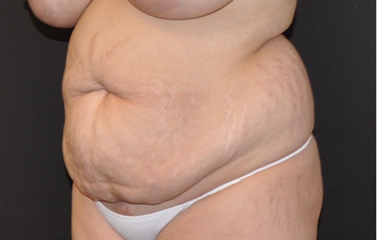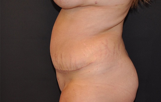 This is a very nice 28 year old female who is concerned about her abdominal appearance after multiple pregnancies. She is 5’3 tall and weighs 175 lbs. She underwent a standard abdominoplasty with muscle plication and liposuction to her hips, flanks and upper back. The resection weight was 2000 grams from her abdomen, and a total of 2,000 cc of fat was aspirated from her hips and back. The results shown are early, only one month from surgery. Her scars will continue to fade and the swelling will continue to diminish over the next 6-12 months.