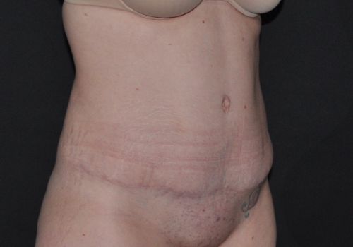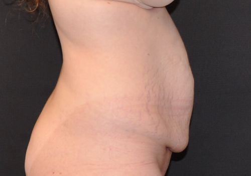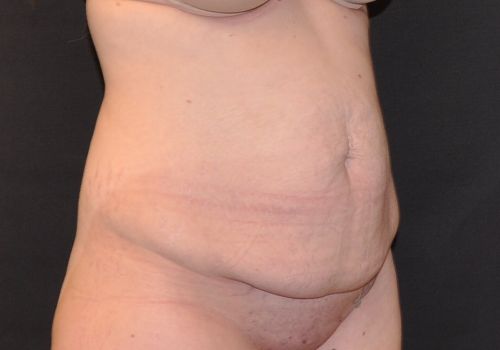 This is a 32 year old female who has had several children and is concerned about the appearance of her abdomen. She is 5’5 and weighs 156 lbs. She underwent a full abdominoplasty and liposuction of her hips. The results shown are 6 months after surgery.