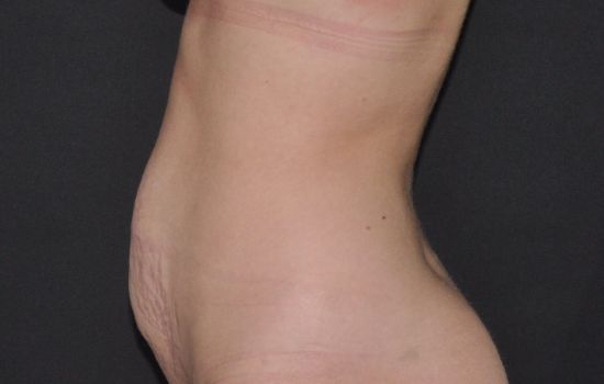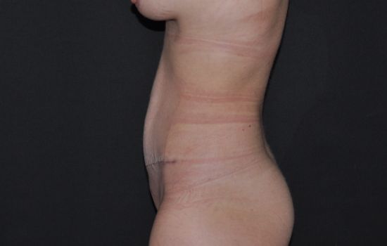 She underwent a standard abdominoplasty with liposuction of her hips. The results shown are