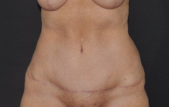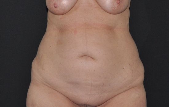 This is a 60 year old female, 5’9 and 175 lbs, who has had two children and feels that her abdomen has changed significantly after childbirth. She desires a flatter stomach with tighter skin. She underwent a standard abdominoplasty with muscle plication. Results are 6 months out from surgery.