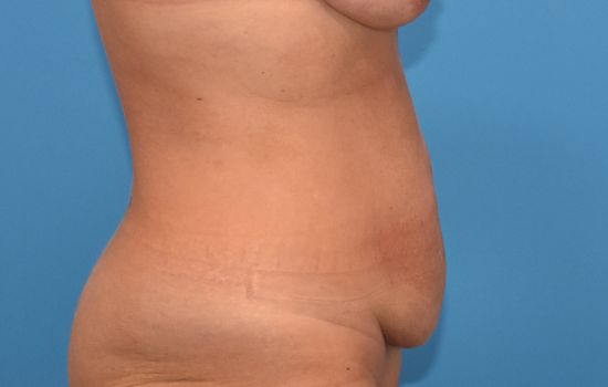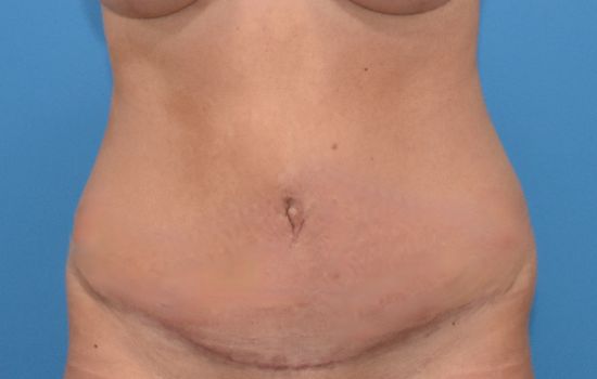 37 yr old female, 5’1’’ and 156 lbs, has had multiple children and is unhappy with the appearance of her abdomen. She underwent an abdominoplasty with full repair of her diastasis (muscle separation) .Results shown are 6 months after surgery.