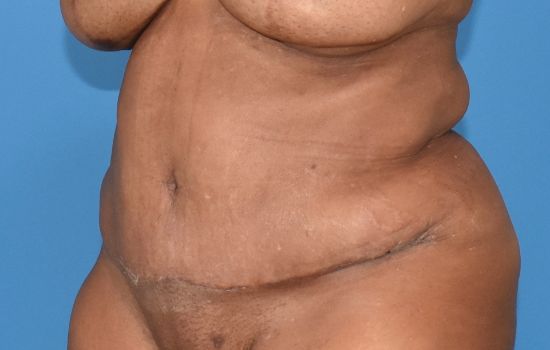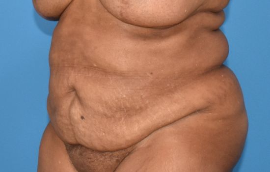71 yr old female, 5’6 and 168 lbs, underwent an abdominoplasty with liposuction of her upper and lower back. Results shown are 6 months after surgery.