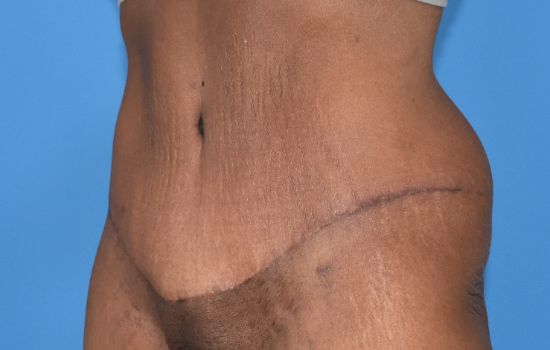 42 yr old female, 5’7 and 160 lbs, has lost over 50 lbs and has had twin births. She underwent an extended abdominoplasty with plication of her muscles. Results shown are 6 months after surgery.