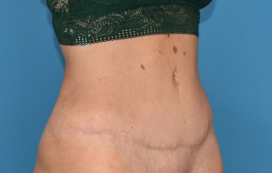 39 yr old female, 5’7 and 162 lbs, has had multiple children and is now concerned about the appearance of her abdomen. She underwent an abdominoplasty with liposuction of her hips. She had 1500 cc removed from liposuction and 950 gr of skin removed from her abdomen. Results shown are 6 months after surgery.