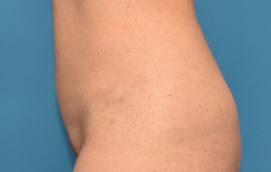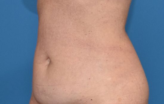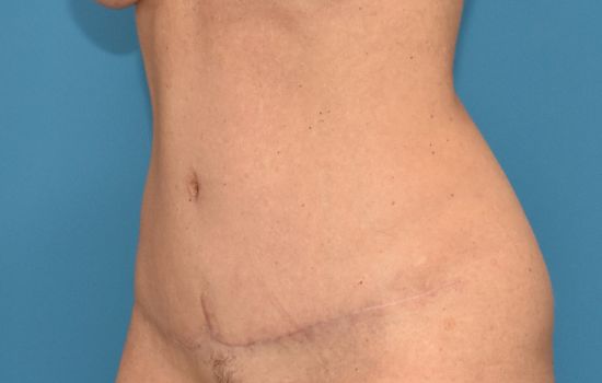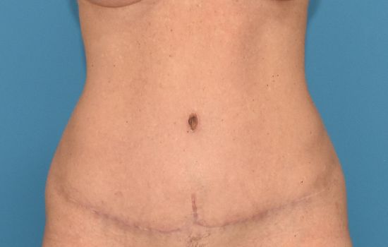 51 yr old female, 5’3 and 132 lbs, has had multiple children and is now concerned about the appearance of her abdomen. She underwent an abdominoplasty with plication of her abdominal muscles, removal of lower abdominal skin and liposuction to her hips. Results shown are 6 months after surgery.