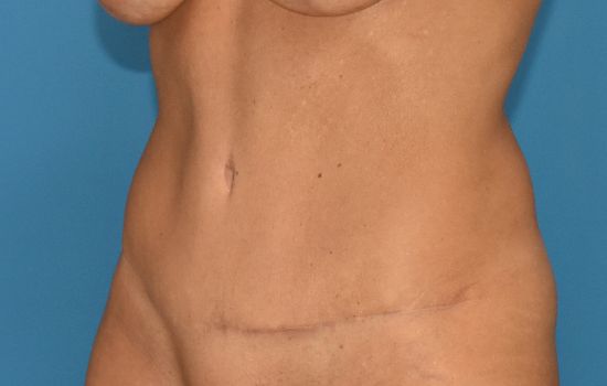 45 yr old female, 5’6 and 132 lbs, has had multiple kids and is concerned about her abdominal contour. She underwent an abdominoplasty with muscle tightening and liposuction of her hips. Results shown are 6 months after surgery.