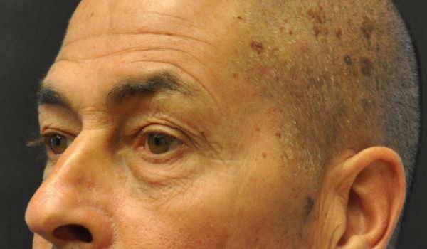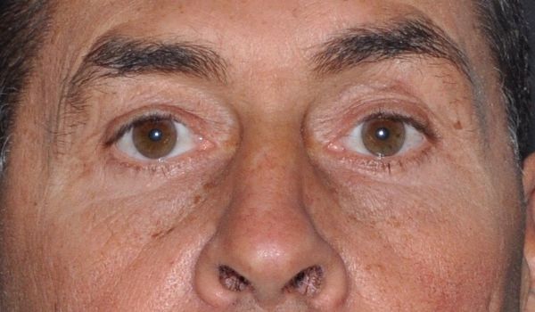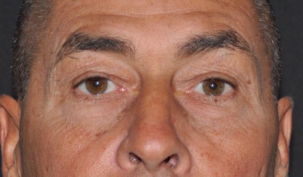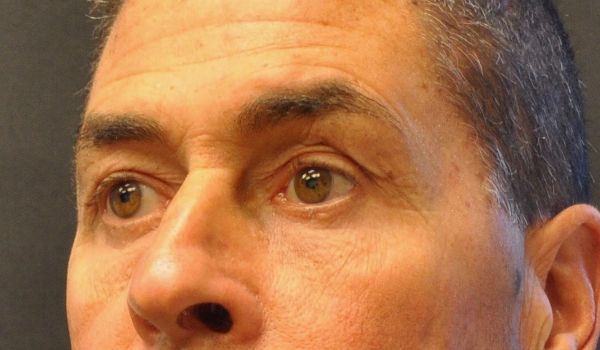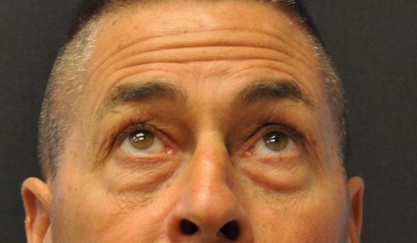 This is a 61 year old male desiring a more youthful look to his eyelids. He underwent an upper and lower blepharoplasty (eyelid tightening) procedure. Results shown are 6 months from surgery.