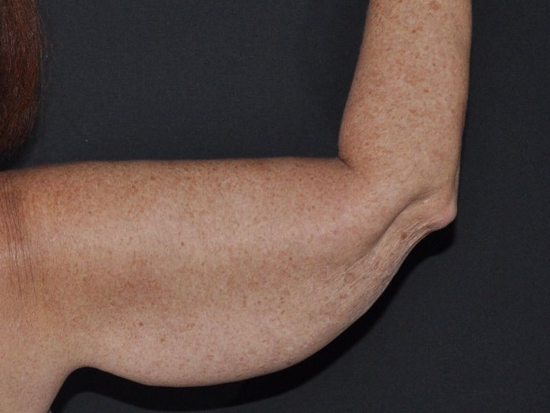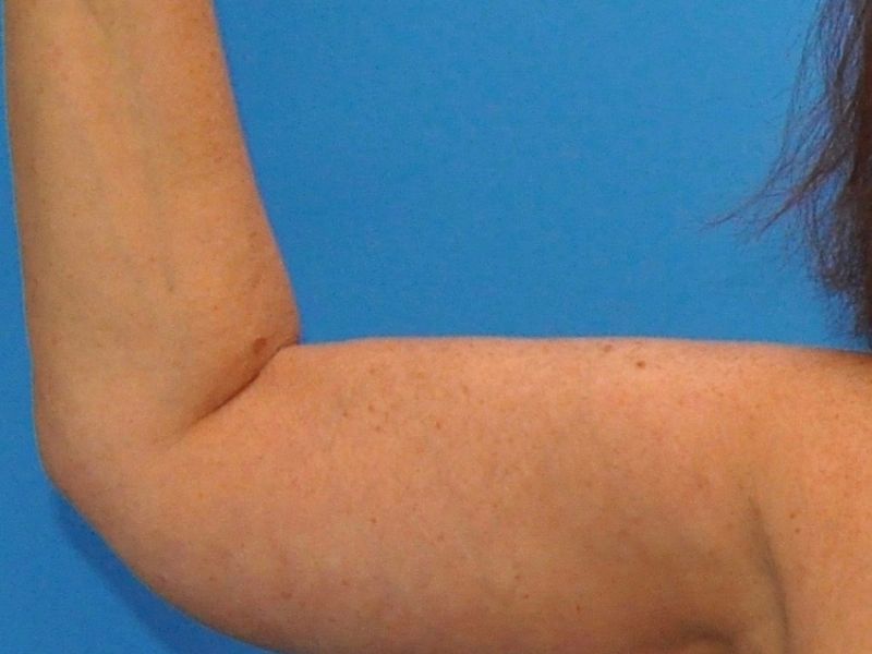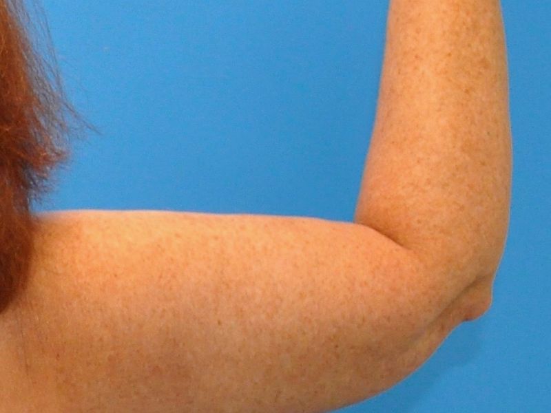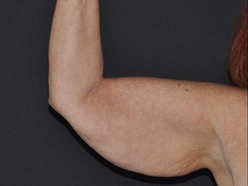 60 year old female, 5’3 and 155 lbs, desiring improvement in the contour of her arms. She underwent a brachioplasty (or arm lift) with liposuction. Results shown are 6 months after surgery.