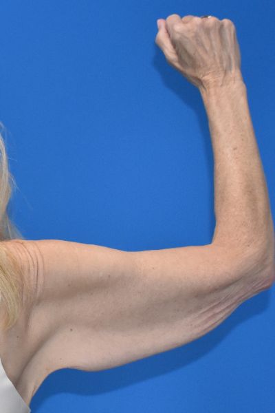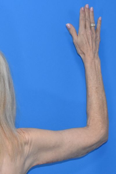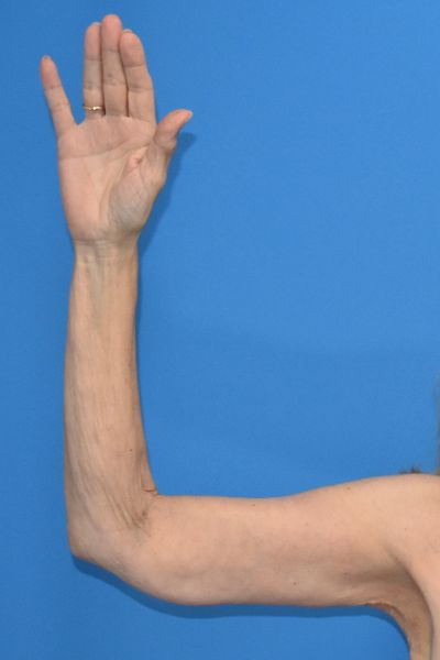 71 yr old female, 5’2 and 136 lbs, who had gastric bypass surgery and loss over 100 lbs. She underwent a brachioplasty (arm lift). Results shown are 6 months after surgery.