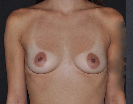 This is a 24 year old female who desires breast augmentation. She is 5’2 and weighs 105 lbs. She underwent breast augmentation with 300 cc high profile silicone gel implants. Results are early, only 1 month from surgery.