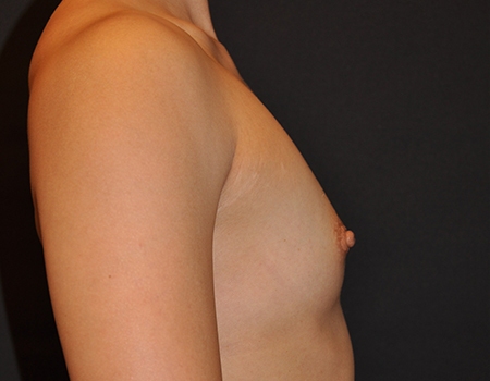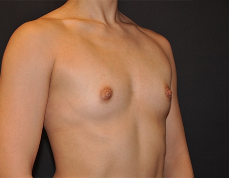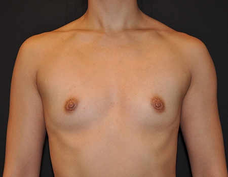This is a 31 year old Asian female who is currently an A cup breast and desires a C cup breast. She is 5’3 and weighs 112 lbs. She underwent a breast augmentation with smooth round silicone gel implants, submuscular, 350 cc high profile. Results shown are 6 months after surgery.