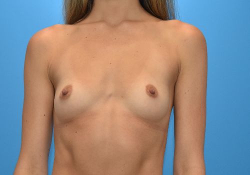 26 yr old female, 5’10 and 140 lbs, desiring larger breasts. She underwent a submuscular breast augmentation using Allergan 310 silicone implants. Results shown are 6 months after surgery.