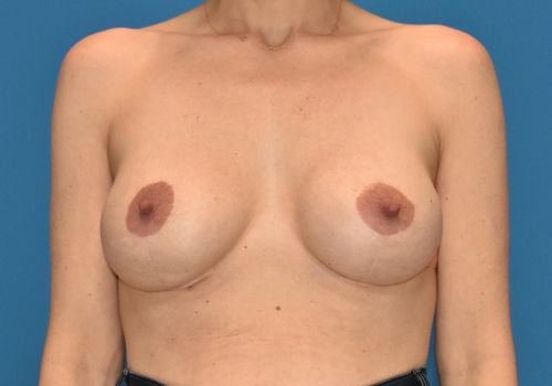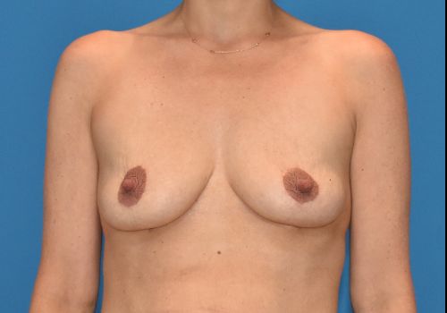 36 yr old female, 5’5 and 125 lbs, had a previous breast reduction about 10 yrs ago and now desires more breast fullness. She underwent a submuscular breast augmentation using Mentor XTRA fill 295 cc silicone implants. Results shown are 6 months after surgery.