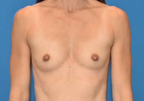 36 yr old female, 5’7 and 120 lbs, is desiring breast augmentation. She underwent an augmentation using Mentor 275 cc moderate plus silicone implants. Results shown are6 months after surgery.