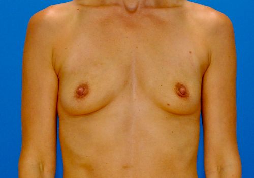 35-year-old female, 5’2″ and 110 lbs, underwent a breast augmentation with Mentor smooth round 450 cc high profile XTRA fill implants. Results shown are 6 months after surgery.