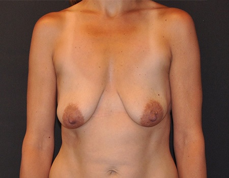 This is a 39 year old Caucasian female who desired a cosmetic enhancement to her breasts. She feels too droopy and deflated in her breasts after having 3 children. She underwent a submuscular breast augmentation and mastopexy (breast lift) with 415 cc Mentor XTRA silicone gel implants. The XTRA silicone implants have 20% more gel than the Memory gel implants, which provides more volume and projection of the breast above the nipple.