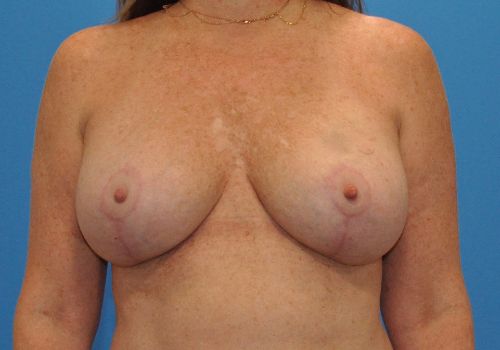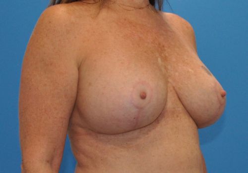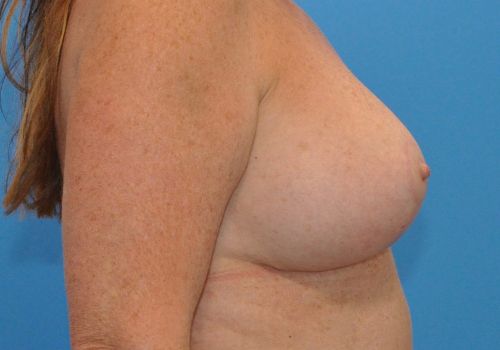 This is a 51 year old patient, 5’4 and 150 lbs, who had silicone implants and wanted to replace them with new implants and have a breast lift. She had 400 cc silicone implants removed and replaced with 370 XTRA silicone moderate plus implants along with a breast lift. Results shown are 6 months postoperative.