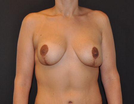 capsulectomy and a vertical mastopexy. The results shown are early, only 1 month after surgery. Swelling and scars will continue to diminish over the next 6-12 months.