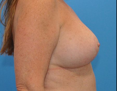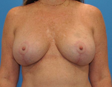 This is a 51 year old patient, 5’4 and 150 lbs, who had silicone implants and wanted to replace them with new implants and have a breast lift. She had 400 cc silicone implants removed and replaced with 370 XTRA silicone moderate plus implants along with a breast lift. Results shown are 6 months postoperative.