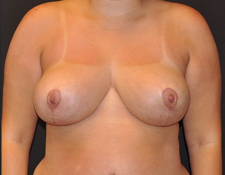 This is a very nice 28 year old female who is concerned about her breast size after multiple pregnancies and breast feeding. She is currently a G cup and desires to wear a full D cup bra. She underwent a short scar, superior-medial breast reduction with the removal of 570 grams from the right breast and 390 grams from the left breast. The results shown are early, only one month from