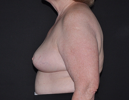 This is a 69 year old female, 5’1 and 136 lbs, who underwent a short scar breast reduction with the removal of 350 grams. In addition, she had liposuction to her bra roll. Results shown are over a year.