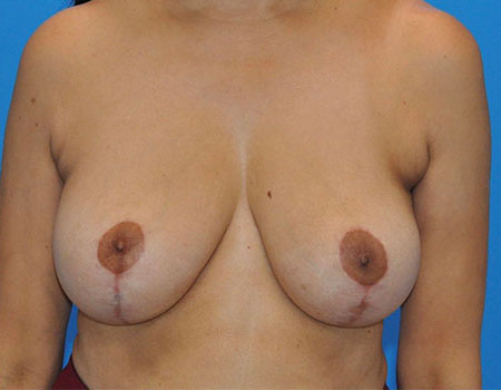 47-year-old female, 5’4 and 148 lbs, underwent a short-scar vertical breast lift reduction, with removal of 160 grams from each side and liposuction to the lateral bra roll. Results shown are 6 months after surgery.