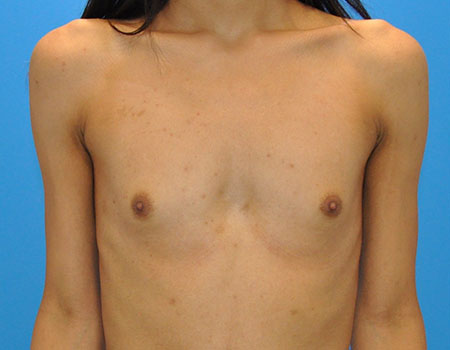 20 year old transgender female, 5’7 and 125, underwent male to female top surgery with breast augmentation. She had a 375 cc moderate plus silicone gel Mentor implant placed in the submuscular pocket. Results shown are 6 months after surgery