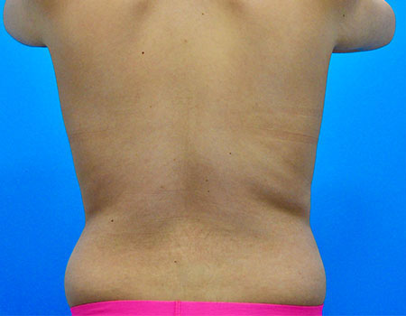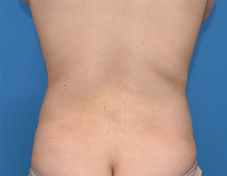 20-year-old transgender female, 5’11 and 192 lbs, underwent a breast augmentation and flank liposuction. She had a submuscular augmentation with Mentor 450 moderate plus silicone gel implants and 1400 cc lipoaspirate removed from her hips/flanks. Results shown are 6 months after surgery.