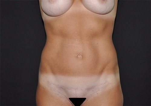 41 year old female 1 year out from a mommy makeover that included a mini-abdominoplasty and breast augmentation. She is 5’1 and weighs 118 lbs. She underwent a mini abdominoplasty with muscle plication and a submuscular breast augmentation with smooth round silicone gel 300 cc moderate plus profile.