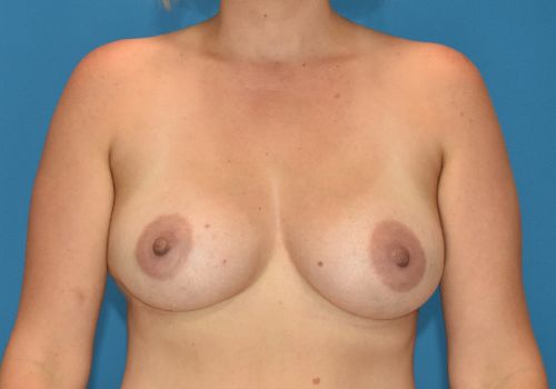 30 yr old female, 5’4 and 140 lbs, underwent a submuscular breast augmentation using Mentor moderate plus silicone Memory gel implants with 250 cc on the right and 225 on the left. She also underwent an abdominoplasty, liposuction to her hips and fat transfer to her buttocks. Results shown are 9 months after surgery.