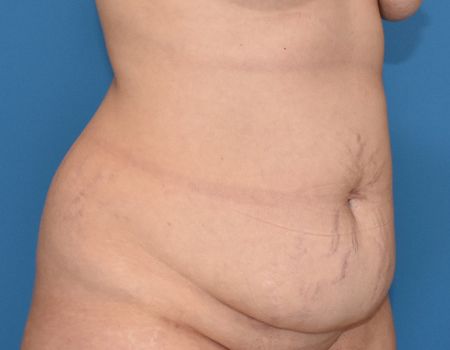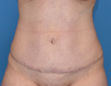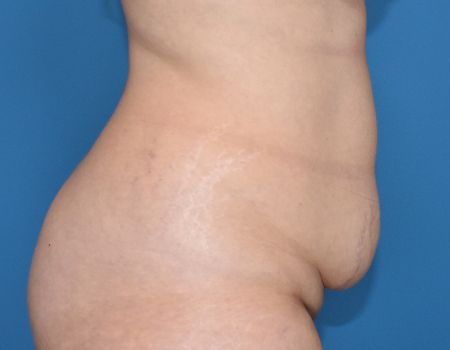 30 yr old female, 5’7 and 150 lbs, has had 3 kids and now feels like her abdomen and breasts are too relaxed. She underwent an abdominoplasty and liposuction to her hips. She had 2000 cc removed with liposuction and 1,341 grams of abdominal skin removed. She also had a breast lift and augmentation with Mentor 250 cc moderate plus silicone implants. Results shown are 6 months after surgery.
